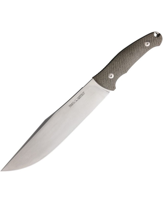 Couteau à lame fixe bushcraft et de forêt, couteau de camp outdoor VIPER Knives Trail fixed blade full tang N690 steel stonewash finish green micarta handle brown leather sheath.