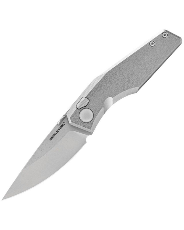 Ce couteau pliant haut de gamme signé Real Steel, offre une prise en main sûre grâce à son manche texturé gris en titane, mesurant 11,8 cm fermé, pour un transport facile au quotidien. La lame de 8,6 cm en acier VANAX SuperClean, acier au Nitrogène renommé pour sa résistance exceptionnelle à la corrosion, bénéficie d'une finition stonewash et satinée élégante.
