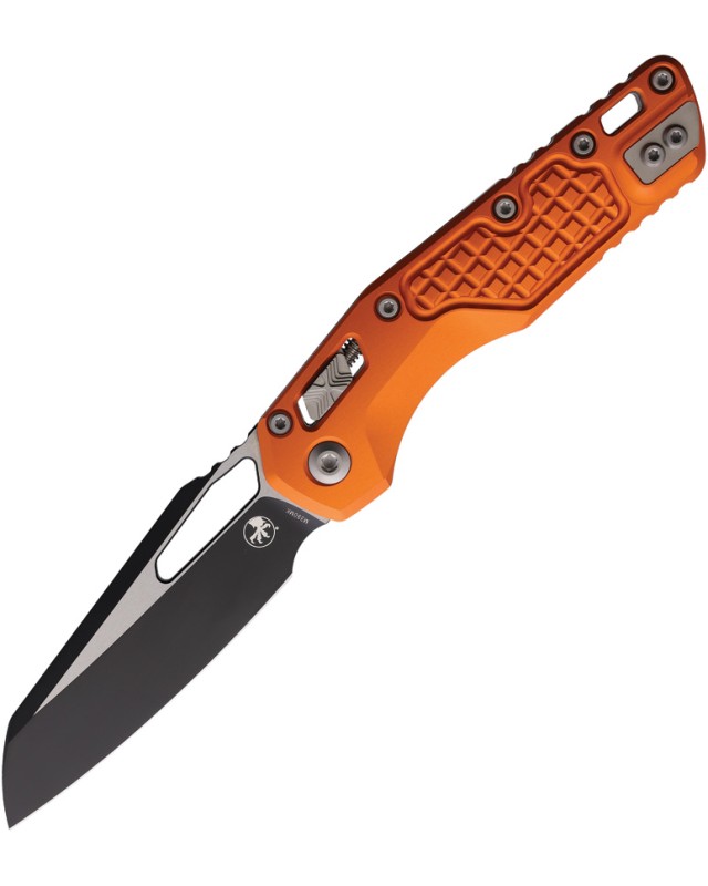 Le Microtech MSI (Microtech Standard Issue) est un couteau pliant manuel conçu pour un usage intensif, combinant robustesse, fonctionnalité et design signature de la marque. Il s'agit d'une version plus tactique avec lame two-tone et un manche aluminium frag pattern orange pour un grip et une prise en main très performante.