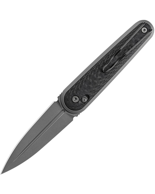 Au cœur de ce design se trouve une lame de type dague en acier N690, reconnue pour sa résistance élevée, sa durabilité et sa capacité à conserver un tranchant performant. Son revêtement titane renforce encore sa solidité tout en lui apportant une esthétique sobre et technique.