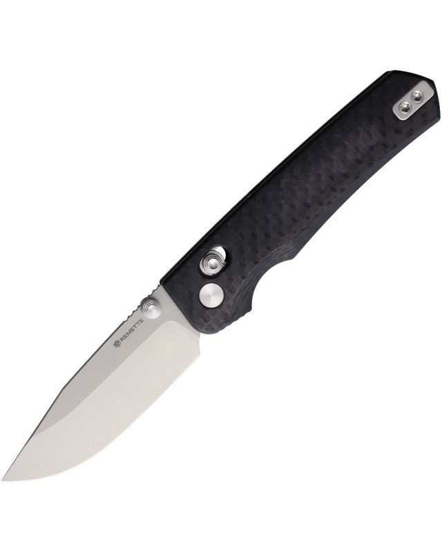 Couteau pliant de poche EDC REMETTE Aurora folding knife 14C28N steel satin finish blade crossbar lock black G10 handle.