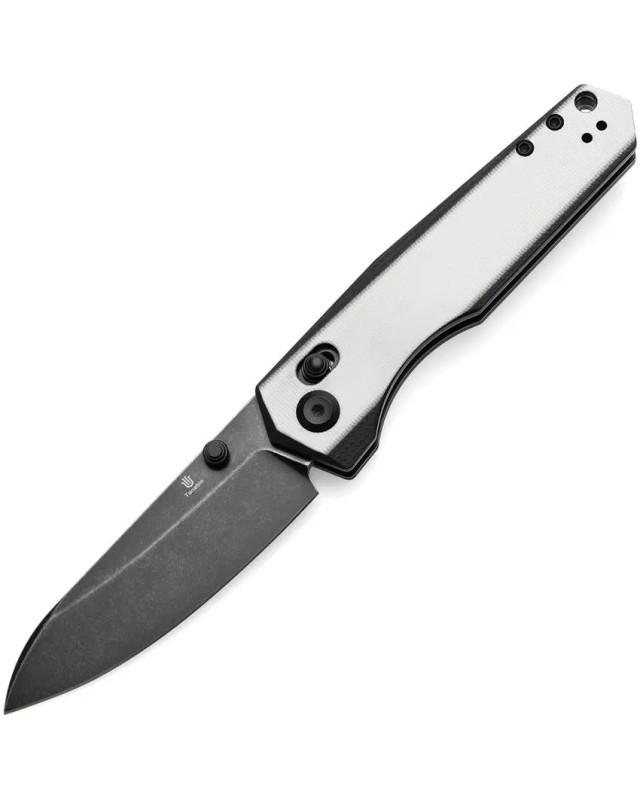 Couteau pliant de poche EDC Tenable Beaver Folding Knife Black and White G10 Handle blackwashed Nitro-V steel Blade crossbar lock