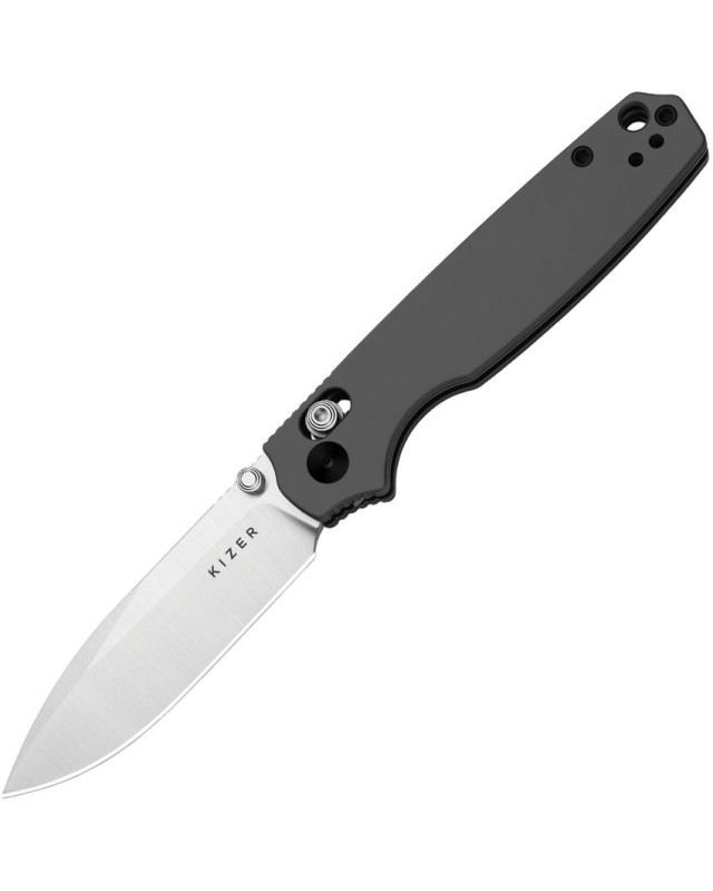 Kizer Cutlery Pokiman folding knife AEB-L stainless steel satin finish blade Clutch Lock gray aluminium handle