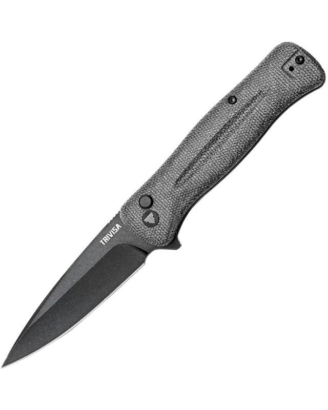 TRIVISA se distingue par son exigence de qualité et d’innovation, incarnée dans ce modèle Dor-4 Black Stonewash. Compact une fois replié (11,76 cm), ce couteau pliant de poche répond parfaitement aux attentes des amateurs d’EDC modernes ainsi que tout ceux qui ne souhaitent pas multiplier les lames pour leurs aventures en plein air. En effet, sa lame Spear Point de 9,22 cm, fabriquée en acier inoxydable Sandvik 14C28N et dotée d’une superbe finition Blackwash noire, garantit une durabilité à toute épreuve et une élégance affirmée. L'acier suédois Sandvik, réputé pour sa tenue de coupe, sa résistance à la corrosion et sa facilité d'affûtage était un choix tout désigné pour ce bel EDC à vocation plus large.