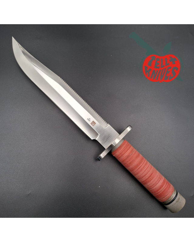 Le manche est tressé d'une corde rouge (qui devient souvent pâle avec les années, spécialement lorsque le couteau est exposé et reçoit la lumière du soleil en direct... Le manche de cet exemplaire est en parfait état !
