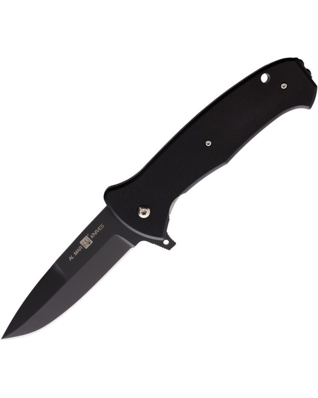 Couteau pliant de poche EDC couteau militaire AL MAR Knives SERE 3 S35VN steel black TiNi coated blade black G10 handle flipper framelock.