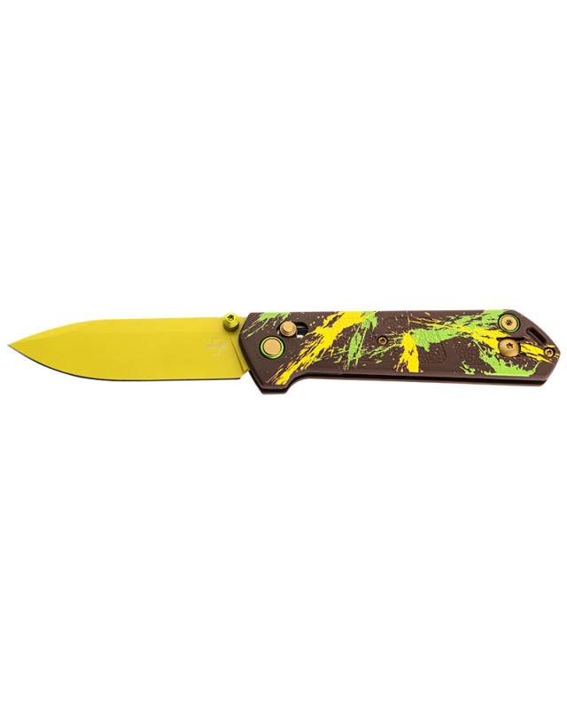 Couteau pliant de poche EDC Böker Plus Kihon Dubai Chocolate folding knife D2 steel satin finish blade GFN handle crossbar lock.