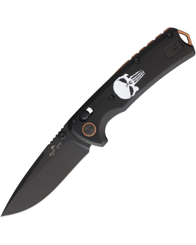 Acier inox 14C28N pour la lame, et aluminium noir avec gravure Punisher pour le manche, le tout avec un système de verrouillage de type Crossbar lock et un tarif contenu, c'est un ticket gagnant !