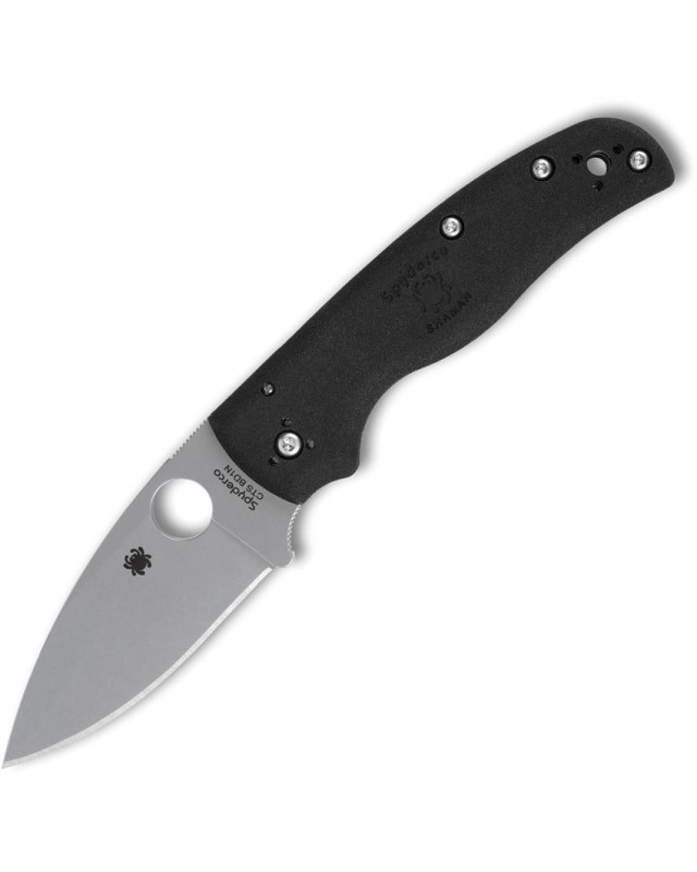 Couteau pliant de poche EDC Spyderco Shaman Lightweight Compression Lock satin finish CTS-BD1 stainless blade black FRN handle.