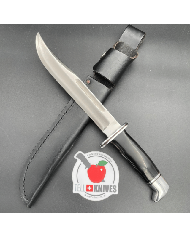 18cm 420HC stainless steel blade with a 17cm cutting edge with a groove (the urban legend says it's to make the blood flow... it's just to lighten the knife while giving it a nice look)...