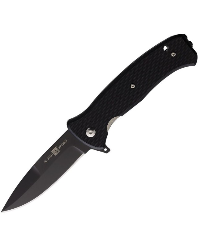Couteau pliant de poche EDC couteau militaire AL MAR Knives Mini SERE 3 S35VN steel black TiNi coated blade black G10 handle flipper framelock.