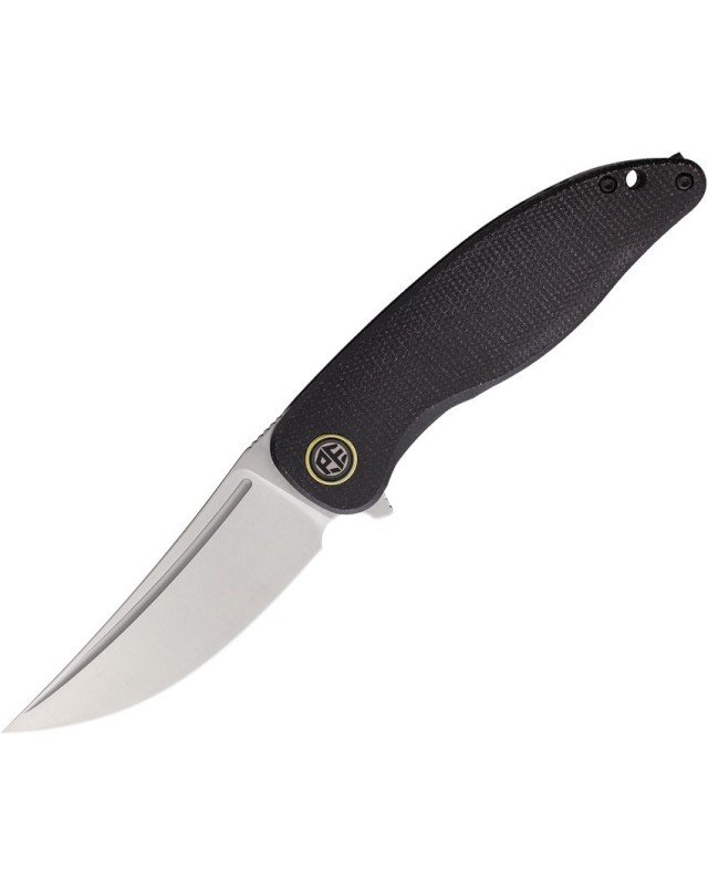 Petrified Fish Simum Linerlock K110 steel satin finish blade Black Micarta handle flipper