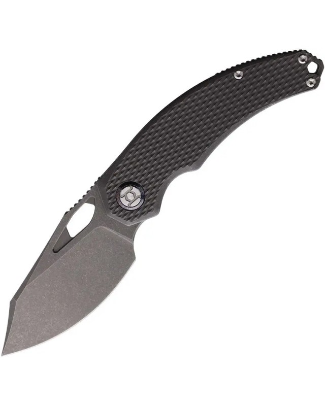 Couteau pliant de poche EDC KUNWU Knives Padre folding knife VANAX steel stonewash finish blade Framelock Gray checkered titanium handle.