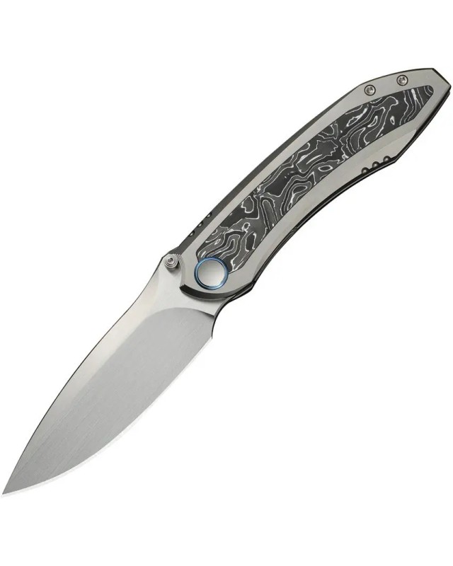 Couteau pliant de poche EDC We Knife Co. Winsome Nested M390 stainless steel satin finish blade Framelock Grey Titanium Handle Aluminum Foil Carbon Fiber Inlay.