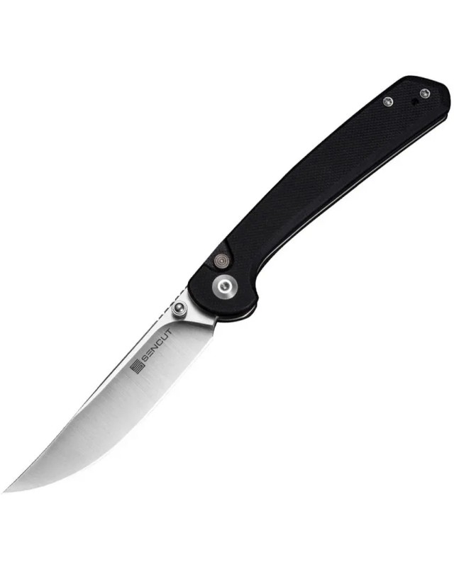 Couteau de poche pliant EDC SENCUT Skelfin Button Lock 9Cr18MoV steel satin finish blade black G10 handle.