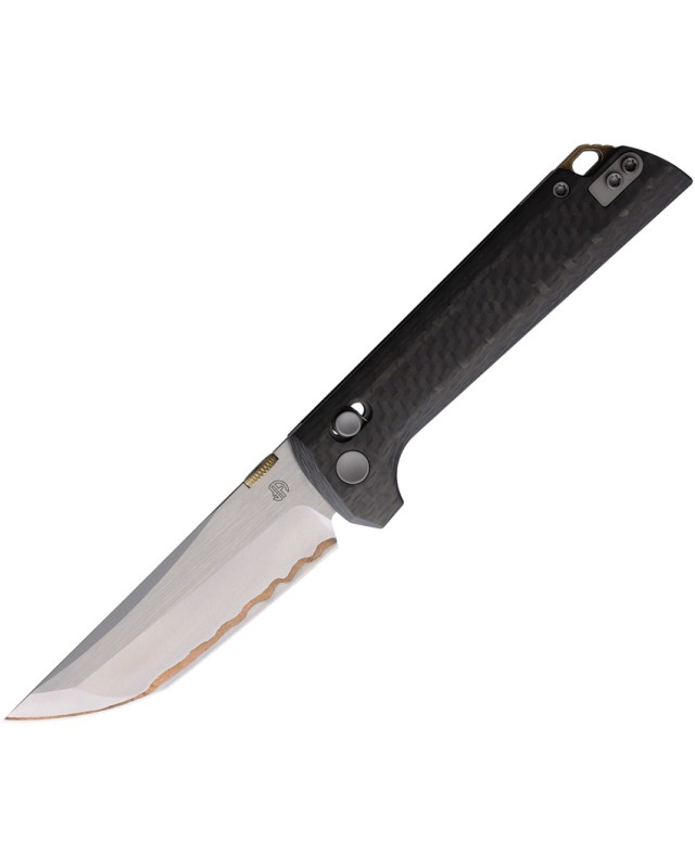 Spécifications techniques - Longueur totale fermée : 11,43 cm - Longueur totale ouverte : 20,32 cm - Longueur de lame : 8,89 cm - Type de lame : Tanto - Acier : 10Cr15CoMoV forgé 5 couches, finition satin - Couleur de la lame : Grise - Matière du manche : Fibre de carbone - Couleur du manche : Noir.