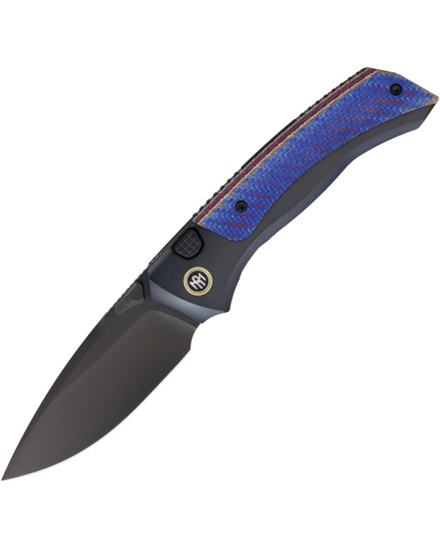 Le manche, associant la légèreté de la fibre de carbone à la robustesse du titane, arbore une finition noire et bleue raffinée, à la fois sûre et confortable en main. Compact une fois replié (12,2 cm), doté d’un système de verrouillage Button+Frame Lock pour une sécurité optimale, ce couteau pliant s’impose comme l’allié incontournable des passionnés d’EDC recherchant fiabilité, design et élégance.