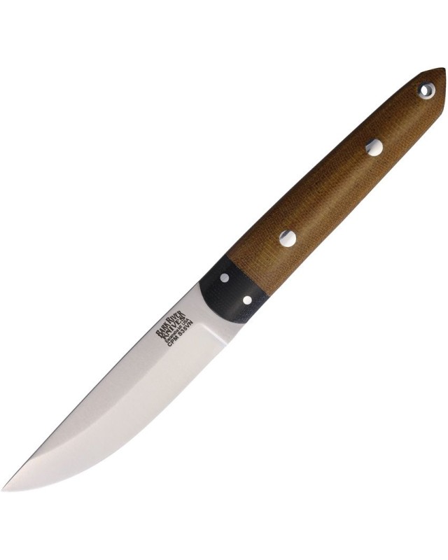 Couteau fixe de forêt et de bushcraft Bark River Knives Kwaiken Full tang S35VN Fixed Blade Natural Micarta Brown leather sheath.