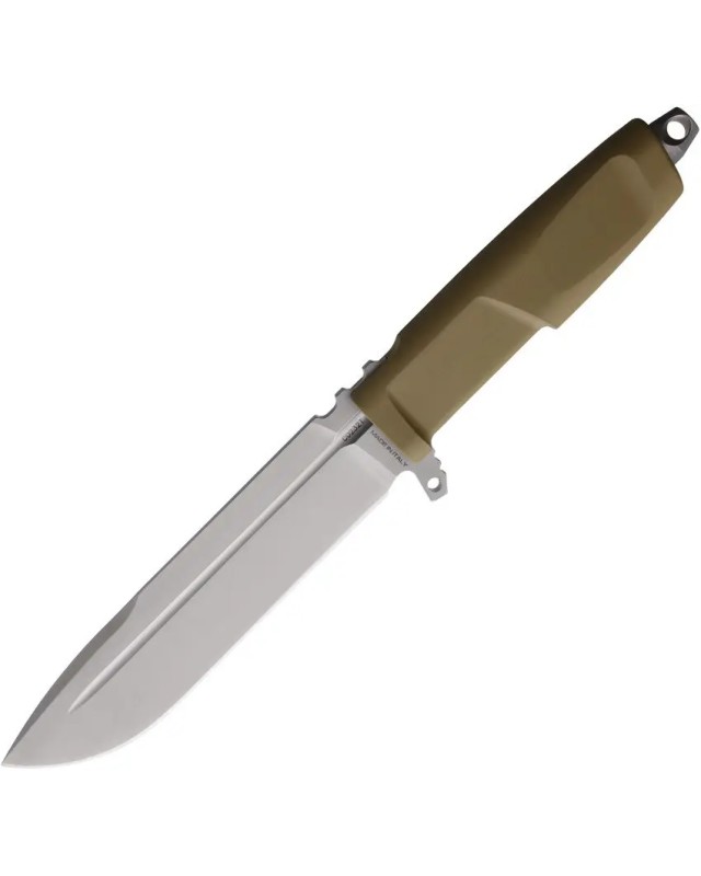 Couteau fixe militaire et tactique Extrema Ratio DMP fixed blade Bohler N690 steel stonewash finish Coyote Forprene handle coyote nylon MOLLE compatible belt sheath.
