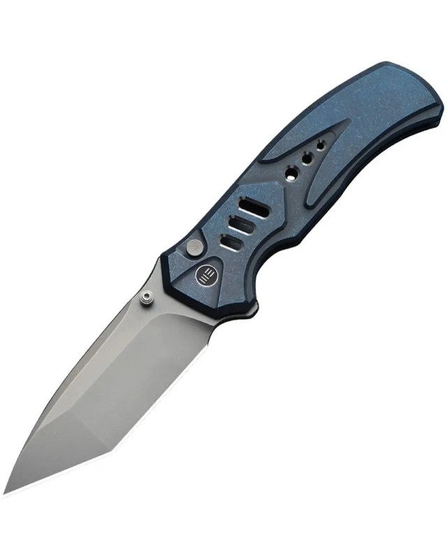 Couteau pliant de poche EDC We Knife Co. Zentron Buttonlock M390 Premium Steel stonewash finish Tanto blade blue Titanium Handle.