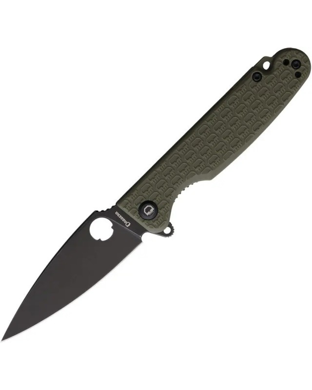 Couteau pliant de poche EDC Daggerr Knives Florin Linerlock 8Cr14MoV stainless steel blade blackwash finish OD Green FRN handle.