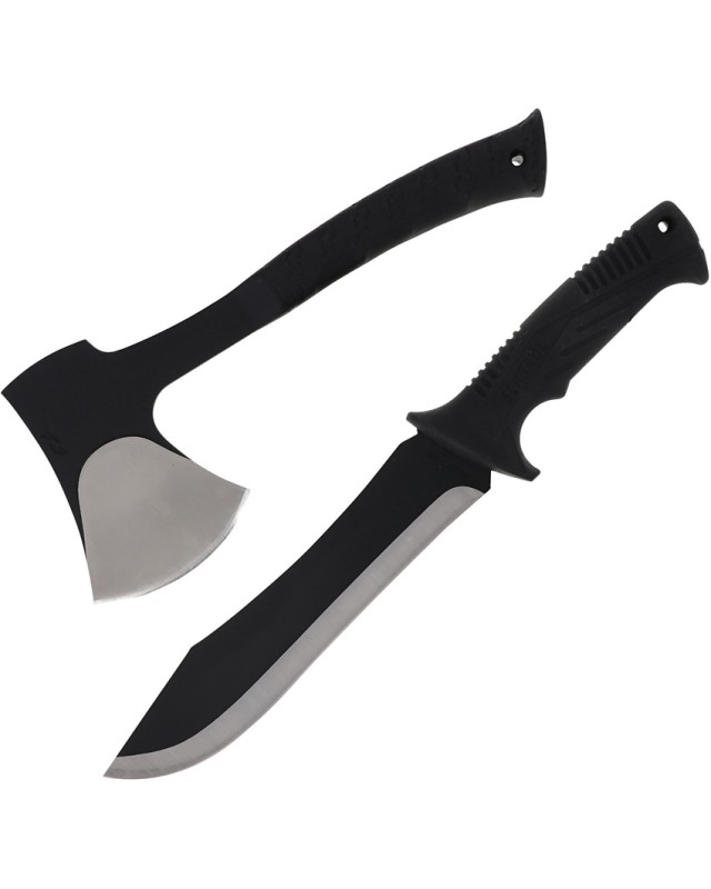 Découvrez le Combo Schrade Machete/Axe 3Cr13 Stainless Steel Black Handle, un beau duo proposé par la marque Schrade, référence en matériel efficace outdoor!
