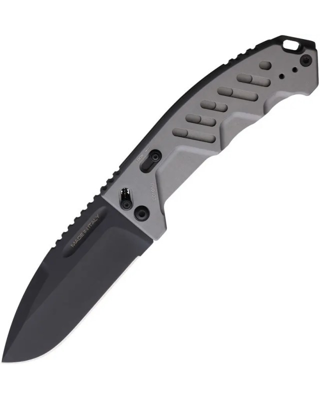 Couteau pliant de survie Extrema Ratio RAO C Crossbar Lock Black MIL-C-13924 burnished Bohler N690 stainless blade Grey aluminium handle.
