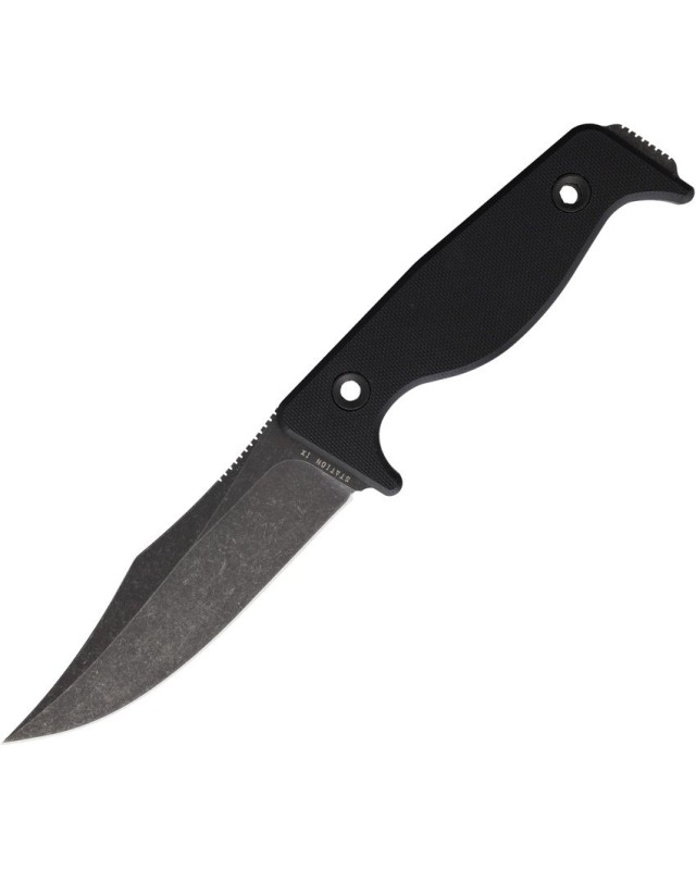 Couteau à lame fixe militaire et tactique Station IX NUMERO 15 UMAC full tang VG-10 stainless steel blackwash finish black G10 handle black kydex sheath.