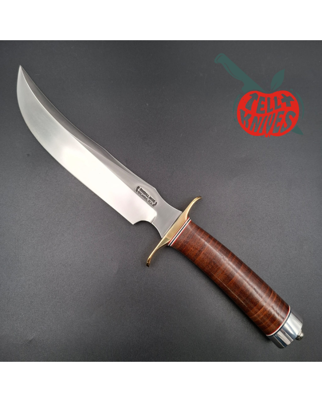Couteau fixe de combat, couteau de collection Randall Made Knives 2001 RSK4 4-8 fighter forged carbone steel blade brass hilt stacked leather handle brown leather sheath with stone only 384 made.