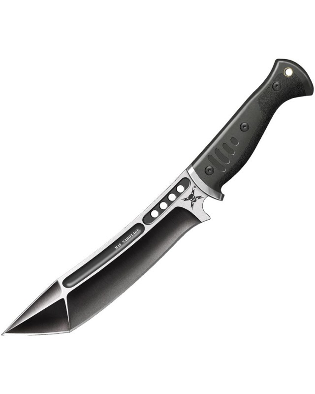 United Cutlery M48 Sabotage Tanto Fighter Full tang stainless steel two tone finish blade black rubber handle nylon shea